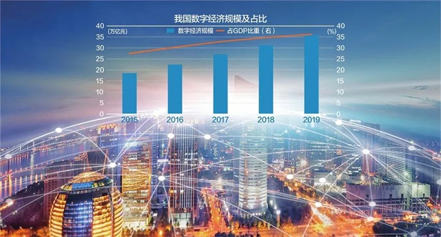 2021年7月,《中國互聯(lián)網(wǎng)發(fā)展報(bào)告(2021)》顯示,2020年的數(shù)字經(jīng)濟(jì)市場(chǎng)規(guī)模已達(dá)39.2萬億元。2021年8月,中國信息通信研究院發(fā)布的《全球數(shù)字經(jīng)濟(jì)白皮書》顯示,2020年,全球47個(gè)國家數(shù)字經(jīng)濟(jì)規(guī)??偭窟_(dá)到32.6萬億美元,同比名義增長3.0%,占GDP比重為43.7%。中國數(shù)字經(jīng)濟(jì)規(guī)模為5.4萬億美元,位居世界第二;同比增長9.6%,位居世界第一。